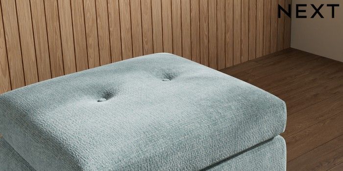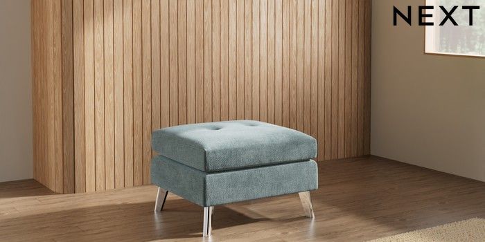 7.3.1 Buy Wilson Buttoned Back Footstool Chunky Chenille Light Teal Green Metal Tapered - Chrome from the Laura Ashley online shop Click here to use our website with more accessibility support, for example screen readers