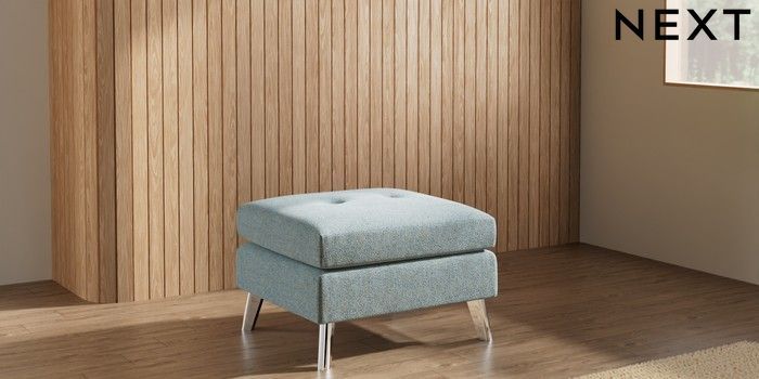 7.3.1 Buy Wilson Buttoned Back Footstool Chunky Marl Mid Blue Metal Tapered - Chrome from the Laura Ashley online shop