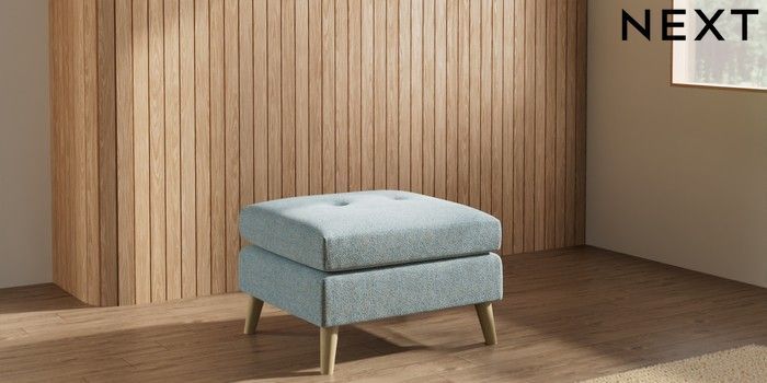 7.3.1 Buy Wilson Buttoned Back Footstool Chunky Marl Mid Blue Retro Tapered - Light from the Laura Ashley online shop