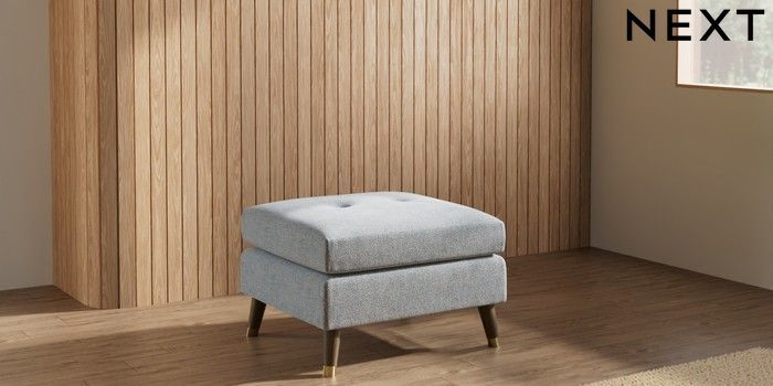 7.3.1 Buy Wilson Buttoned Back Footstool Chunky Marl Mid Grey Low Retro Tapered Metal Cap - Mid from the Laura Ashley online shop