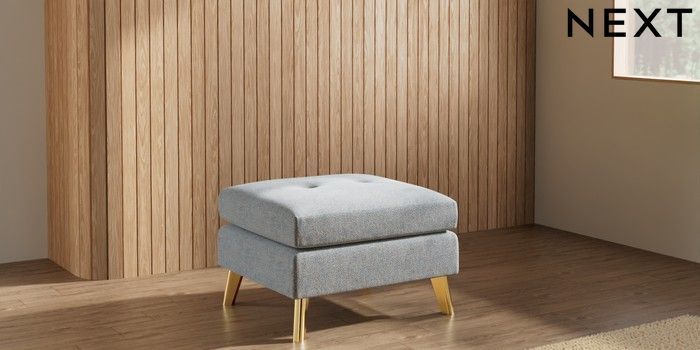 7.3.1 Buy Wilson Buttoned Back Footstool Chunky Marl Mid Grey Metal Tapered - Gold from the Laura Ashley online shop Click here to use our website with more accessibility support, for example screen readers