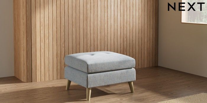 7.3.1 Buy Wilson Buttoned Back Footstool Chunky Marl Mid Grey Retro Tapered - Light from the Laura Ashley online shop