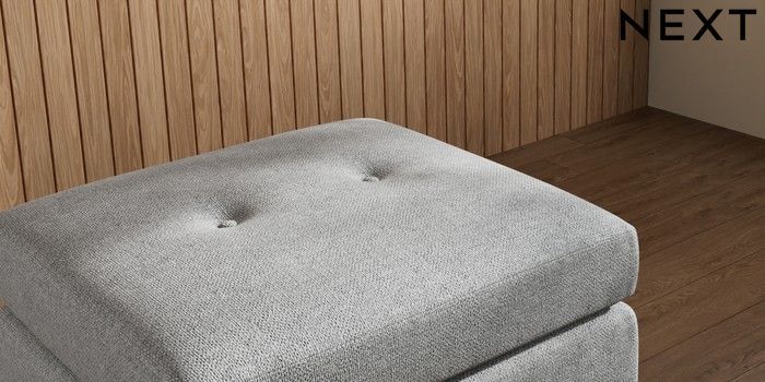7.3.1 Buy Wilson Buttoned Back Footstool Chunky Weave Mid Grey Low Retro Tapered Metal Cap - Mid from the Laura Ashley online shop Click here to use our website with more accessibility support, for example screen readers