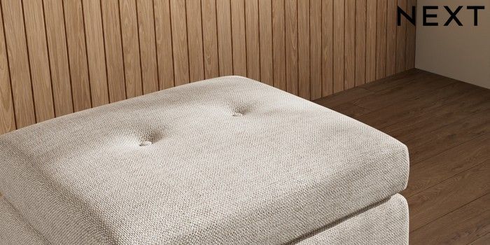 7.3.1 Buy Wilson Buttoned Back Footstool Chunky Weave Mid Natural Retro Tapered - Dark from the Laura Ashley online shop