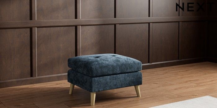 7.3.1 Buy Wilson Buttoned Back Footstool Distressed Velour Midnight Blue Retro Tapered - Light from the Laura Ashley online shop