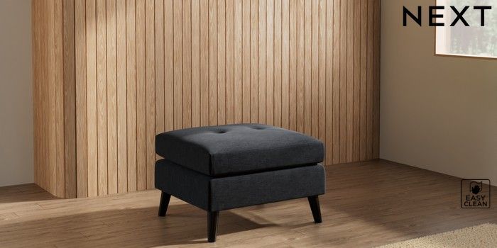 7.3.1 Buy Wilson Buttoned Back Footstool Fine Chenille Easy Clean Black Retro Tapered - Dark from the Laura Ashley online shop