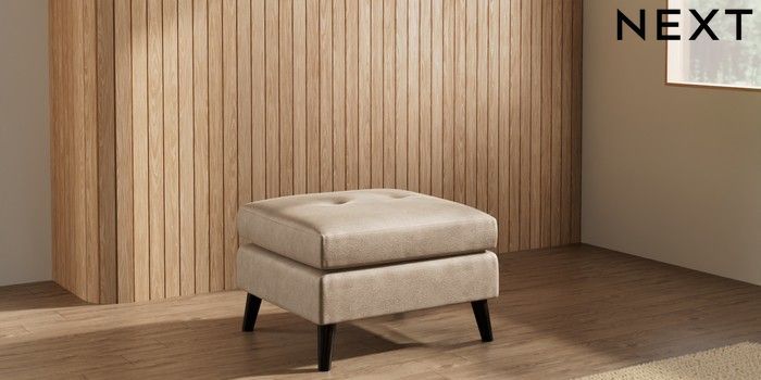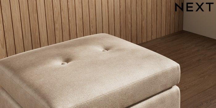 7.3.1 Buy Wilson Buttoned Back Footstool Luxe Chenille Mid Camel Beige Retro Tapered - Dark from the Laura Ashley online shop
