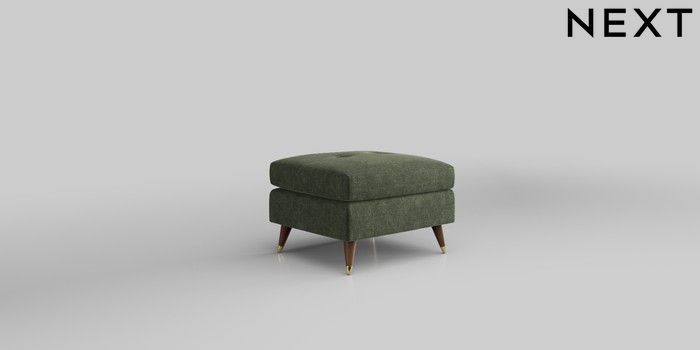 6.12.1 Buy Wilson Buttoned Back Footstool Luxe Chenille Mid Green Low Retro Tapered Metal Cap - Mid from the Laura Ashley online shop Click here to use our website with more accessibility support, for example screen readers