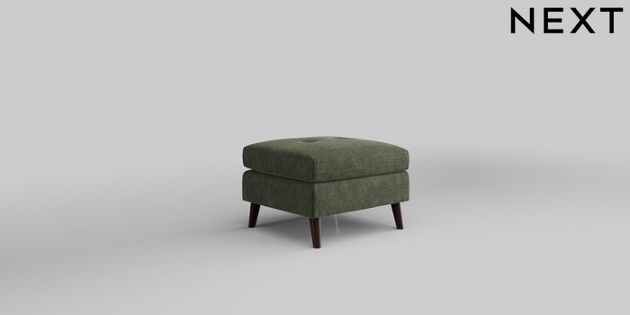 6.12.1 Buy Wilson Buttoned Back Footstool Luxe Chenille Mid Green Retro Tapered - Dark Brown from the Laura Ashley online shop Click here to use our website with more accessibility support, for example screen readers