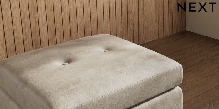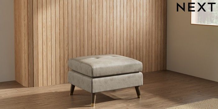 7.3.1 Buy Wilson Buttoned Back Footstool Monza Faux Leather Easy Clean Mink Brown Low Retro Tapered Metal Cap - Mid from the Laura Ashley online shop