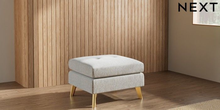 7.3.1 Buy Wilson Buttoned Back Footstool Multi Weave Light Blue Metal Tapered - Gold from the Laura Ashley online shop