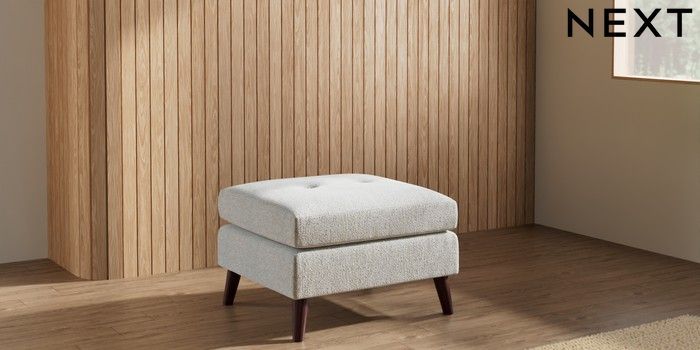7.3.1 Buy Wilson Buttoned Back Footstool Multi Weave Light Blue Retro Tapered - Dark Brown from the Laura Ashley online shop