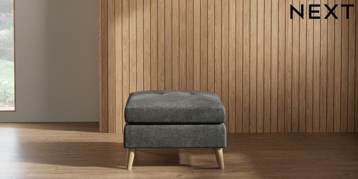 7.2.10 Buy Wilson Buttoned Back Footstool Plush Chenille Dark Grey Retro Tapered - Light from the Laura Ashley online shop Click here to use our website with more accessibility support, for example screen readers
