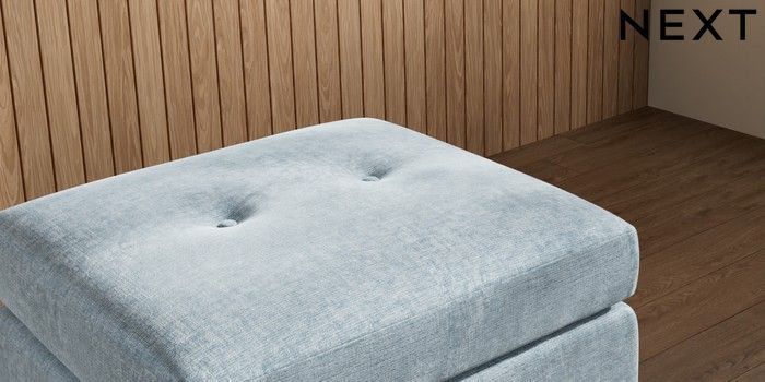 7.3.1 Buy Wilson Buttoned Back Footstool Plush Chenille Light Blue Metal Tapered - Gold from the Laura Ashley online shop