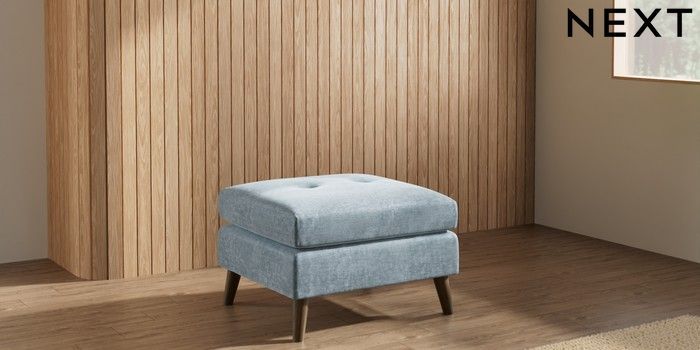 7.3.1 Buy Wilson Buttoned Back Footstool Plush Chenille Light Blue Retro Tapered - Mid from the Laura Ashley online shop