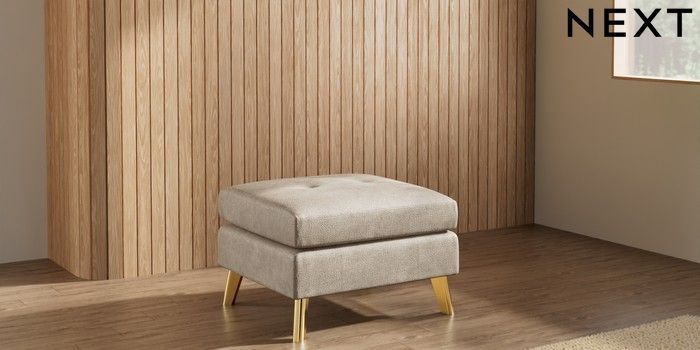 7.3.1 Buy Wilson Buttoned Back Footstool Plush Chenille Light Natural Metal Tapered - Gold from the Laura Ashley online shop Click here to use our website with more accessibility support, for example screen readers