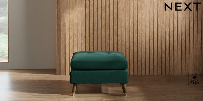 7.2.10 Buy Wilson Buttoned Back Footstool Plush Velvet Easy Clean Bottle Green Low Retro Tapered Metal Cap - Mid from the Laura Ashley online shop Click here to use our website with more accessibility support, for example screen readers