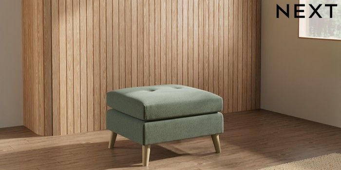 7.3.1 Buy Wilson Buttoned Back Footstool Relaxed Linen Look Dark Green Retro Tapered - Light from the Laura Ashley online shop Click here to use our website with more accessibility support, for example screen readers
