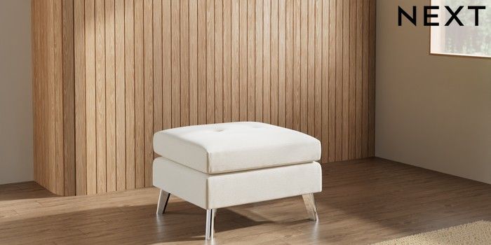 7.3.1 Buy Wilson Buttoned Back Footstool Ripple Chenille Oyster Metal Tapered - Chrome from the Laura Ashley online shop Click here to use our website with more accessibility support, for example screen readers