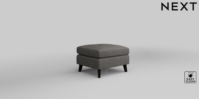 6.12.13 Buy Wilson Buttoned Back Footstool Tweedy Blend Easy Clean Dark Grey Retro Tapered - Dark from the Laura Ashley online shop Click here to use our website with more accessibility support, for example screen readers