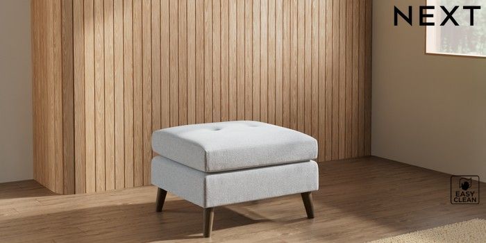7.3.1 Buy Wilson Buttoned Back Footstool Tweedy Blend Easy Clean Light Silver Grey Retro Tapered - Mid from the Laura Ashley online shop Click here to use our website with more accessibility support, for example screen readers