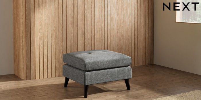 7.3.1 Buy Wilson Buttoned Back Footstool Tweedy Chenille Dark Grey Retro Tapered - Dark from the Laura Ashley online shop