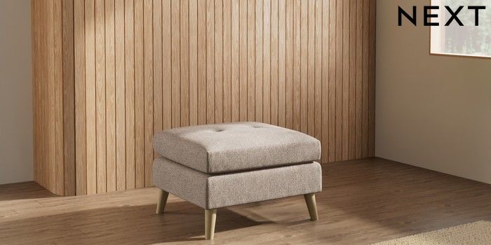7.3.1 Buy Wilson Buttoned Back Footstool Tweedy Chenille Mid Natural Retro Tapered - Light from the Laura Ashley online shop