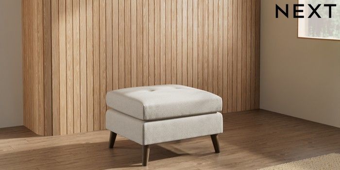 7.3.1 Buy Wilson Buttoned Back Footstool Tweedy Chenille Oyster Retro Tapered - Mid from the Laura Ashley online shop Click here to use our website with more accessibility support, for example screen readers