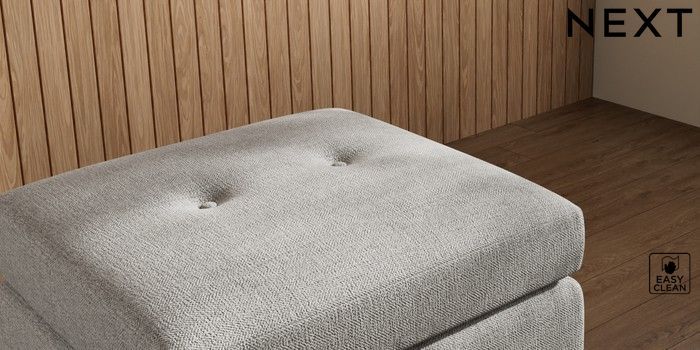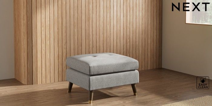 7.3.1 Buy Wilson Buttoned Back Footstool Woven Chenille Easy Clean Light Grey Low Retro Tapered Metal Cap - Mid from the Laura Ashley online shop Click here to use our website with more accessibility support, for example screen readers