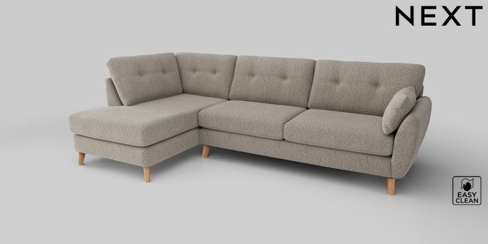 6.12.1 Buy Wilson Buttoned Back Large Corner Chaise - Left Hand Chunky Boucle Easy Clean Dove Retro Tapered - Light from the Laura Ashley online shop Click here to use our website with more accessibility support, for example screen readers