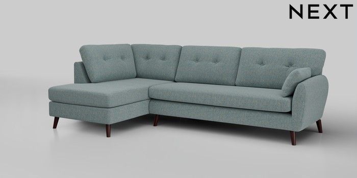 6.12.1 Buy Wilson Buttoned Back Large Corner Chaise - Left Hand Chunky Marl Mid Blue Retro Tapered - Dark Brown from the Laura Ashley online shop Click here to use our website with more accessibility support, for example screen readers
