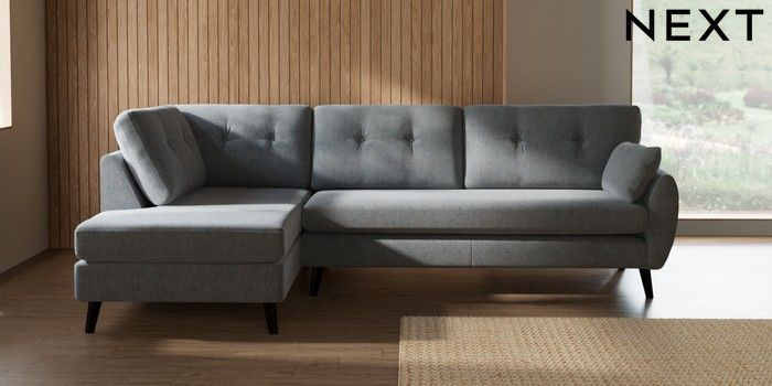 7.3.1 Buy Wilson Buttoned Back Large Corner Chaise - Left Hand Chunky Marl Mid Grey Retro Tapered - Dark from the Laura Ashley online shop