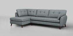 6.12.1 Buy Wilson Buttoned Back Large Corner Chaise - Left Hand Chunky Weave Mid Blue Retro Tapered - Dark Brown from the Laura Ashley online shop Click here to use our website with more accessibility support, for example screen readers