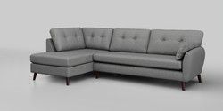 6.12.1 Buy Wilson Buttoned Back Large Corner Chaise - Left Hand Chunky Weave Mid Grey Retro Tapered - Dark Brown from the Laura Ashley online shop Click here to use our website with more accessibility support, for example screen readers