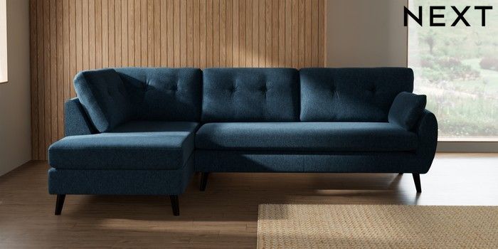 7.3.1 Buy Wilson Buttoned Back Large Corner Chaise - Left Hand Cotswold Chenille Dark Blue Retro Tapered - Dark from the Laura Ashley online shop Click here to use our website with more accessibility support, for example screen readers