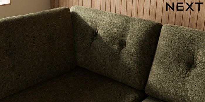 7.3.1 Buy Wilson Buttoned Back Large Corner Chaise - Left Hand Cotswold Chenille Dark Green Retro Tapered - Light from the Laura Ashley online shop Click here to use our website with more accessibility support, for example screen readers