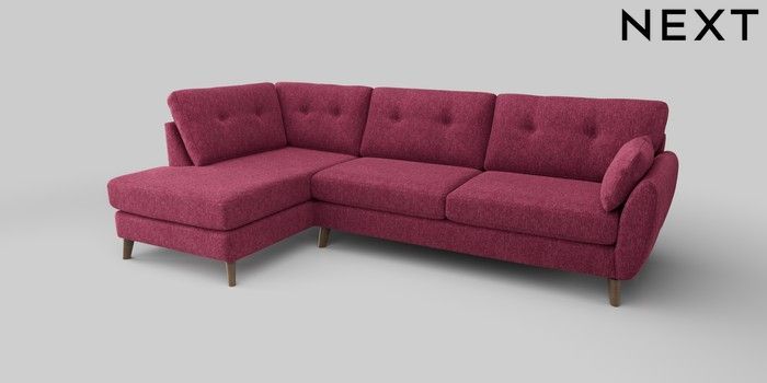 6.12.1 Buy Wilson Buttoned Back Large Corner Chaise - Left Hand Cotswold Chenille Dark Raspberry Pink Retro Tapered - Mid from the Laura Ashley online shop Click here to use our website with more accessibility support, for example screen readers