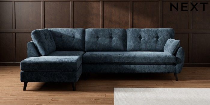 7.3.1 Buy Wilson Buttoned Back Large Corner Chaise - Left Hand Distressed Velour Midnight Blue Retro Tapered - Dark from the Laura Ashley online shop