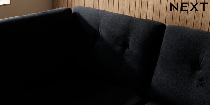 7.3.1 Buy Wilson Buttoned Back Large Corner Chaise - Left Hand Fine Chenille Easy Clean Black Retro Tapered - Light from the Laura Ashley online shop