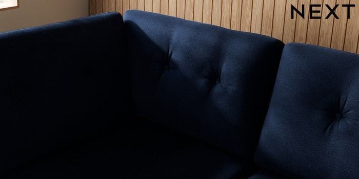7.3.1 Buy Wilson Buttoned Back Large Corner Chaise - Left Hand Luxe Chenille Navy Blue Retro Tapered - Mid from the Laura Ashley online shop