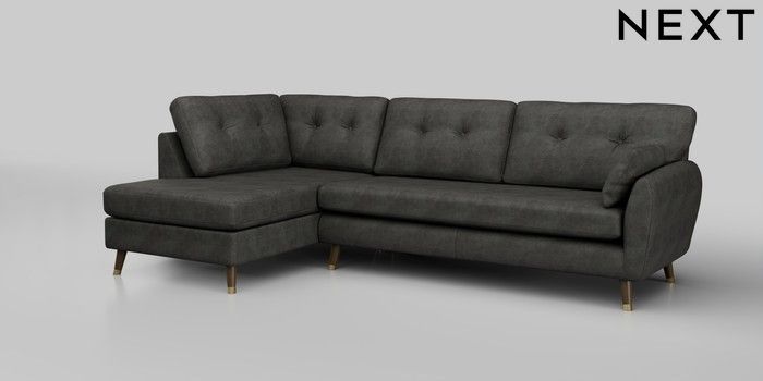 6.12.1 Buy Wilson Buttoned Back Large Corner Chaise - Left Hand Monza Faux Leather Easy Clean Dark Grey Low Retro Tapered Metal Cap - Mid from the Laura Ashley online shop Click here to use our website with more accessibility support, for example screen readers