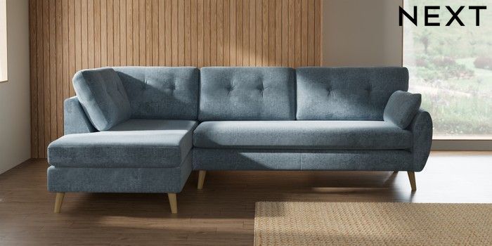 7.3.1 Buy Wilson Buttoned Back Large Corner Chaise - Left Hand Plush Chenille Light Blue Retro Tapered - Light from the Laura Ashley online shop