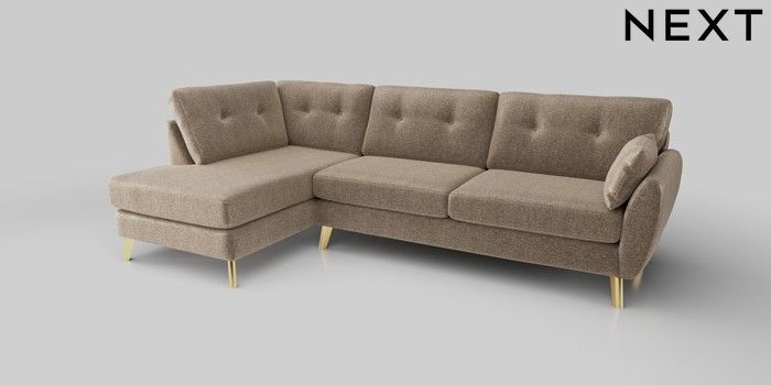 6.12.1 Buy Wilson Buttoned Back Large Corner Chaise - Left Hand Plush Chenille Mid Natural Metal Tapered - Gold from the Laura Ashley online shop Click here to use our website with more accessibility support, for example screen readers