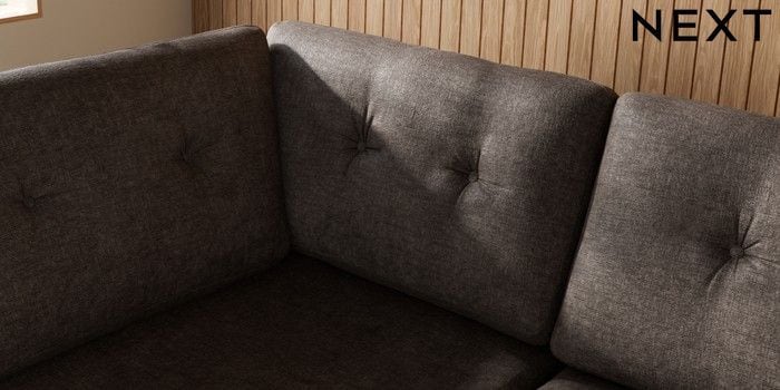 7.3.1 Buy Wilson Buttoned Back Large Corner Chaise - Left Hand Plush Chenille Mink Brown Retro Tapered - Dark from the Laura Ashley online shop
