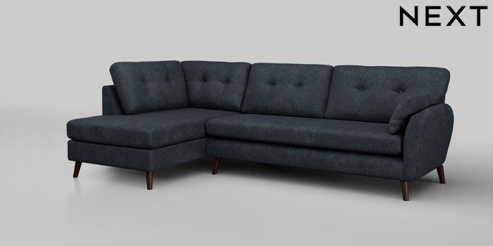 6.12.1 Buy Wilson Buttoned Back Large Corner Chaise - Left Hand Plush Chenille Slate Blue Retro Tapered - Dark Brown from the Laura Ashley online shop Click here to use our website with more accessibility support, for example screen readers
