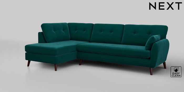 6.12.1 Buy Wilson Buttoned Back Large Corner Chaise - Left Hand Plush Velvet Easy Clean Juniper Green Retro Tapered - Dark Brown from the Laura Ashley online shop Click here to use our website with more accessibility support, for example screen readers