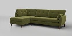 6.12.1 Buy Wilson Buttoned Back Large Corner Chaise - Left Hand Plush Velvet Easy Clean Mid Olive Green Retro Tapered - Dark Brown from the Laura Ashley online shop Click here to use our website with more accessibility support, for example screen readers