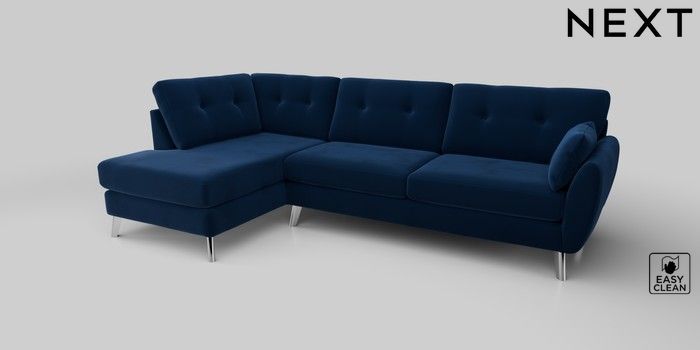 6.12.1 Buy Wilson Buttoned Back Large Corner Chaise - Left Hand Plush Velvet Easy Clean Navy Blue Metal Tapered - Chrome from the Laura Ashley online shop Click here to use our website with more accessibility support, for example screen readers