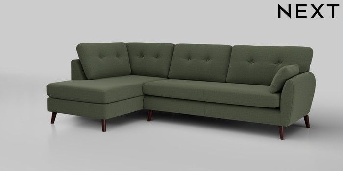 6.12.1 Buy Wilson Buttoned Back Large Corner Chaise - Left Hand Relaxed Linen Look Dark Green Retro Tapered - Dark Brown from the Laura Ashley online shop Click here to use our website with more accessibility support, for example screen readers