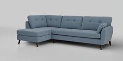 6.12.1 Buy Wilson Buttoned Back Large Corner Chaise - Left Hand Relaxed Linen Look Mid Blue Retro Tapered - Dark Brown from the Laura Ashley online shop Click here to use our website with more accessibility support, for example screen readers
